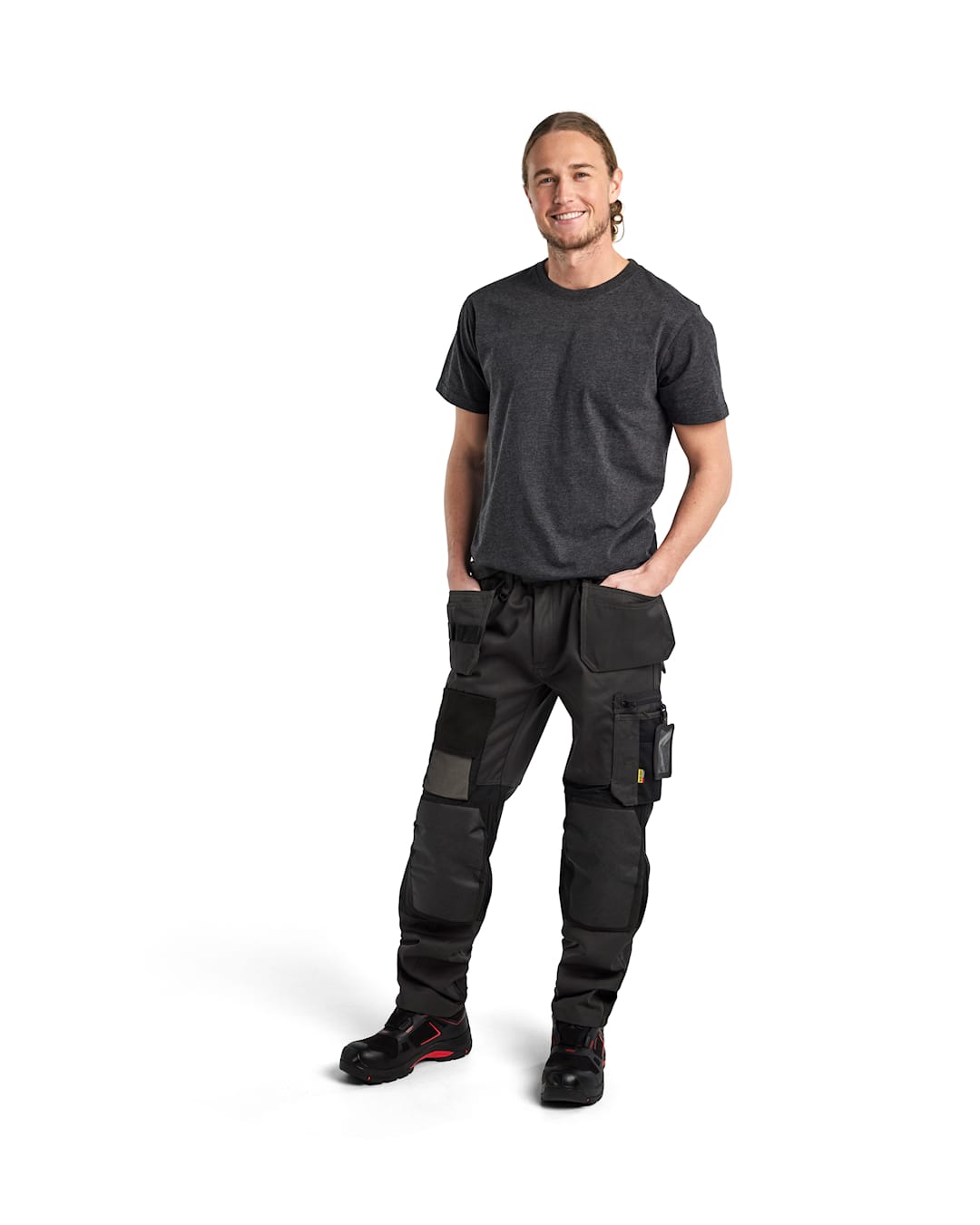 Slijtvaste werkbroek met nauwkeurig ontworpen details die voldoen aan alle professionele eisen als bewegingsvrijheid, functie en comfort. Het materiaal is sterk en in combinatie met elastische panelen is de broek ideaal voor bijvoorbeeld vloerleggers die veel in geknielde houding werken. Voorzien van Stretchmateriaal in het juk, boven kniezakken en in knieholte voor meer bewegingsvrijheid. Een aantal goed geplaatste functionele zakken zoals een meshouder met Kevlar®-versteviging, klep en stretch-paneel en eenvoudig bereikbare flex-telefoonzak van stretchmateriaal waar de meeste mobiele telefoons inpassen.