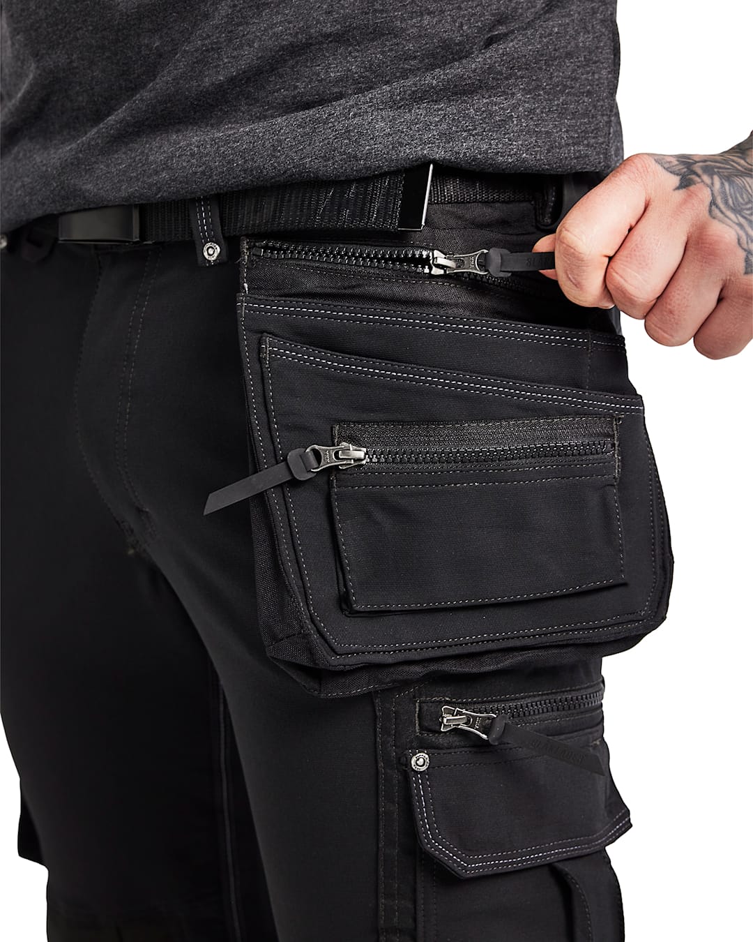 - Achterzakken met plooi Beenzak met klep en klittenbandsluiting met binnenin telefoonzak van mesh Beenzak met rits Steekzakken Kniebeschermerszakken Gereedschapszakken - extra breed